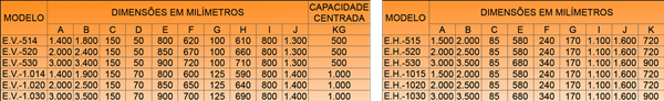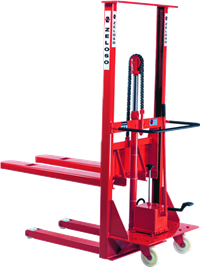 Empilhadeira especial para 300kgs com acionamento através de bomba hidráulica manual. |