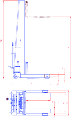 Empilhadeira com acionamento manual para elevar e transportar bobinas. No carro de elevação base móvel que permite o transporte da bobina em segurança. |