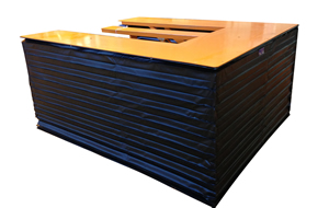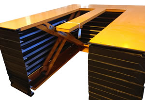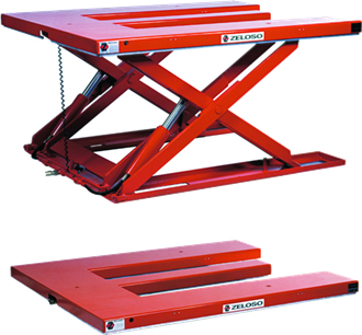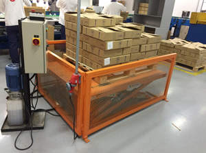 Construída em chapas e perfilados de aço, em modelo pantográfico e seguindo as mais modernas técnicas, a Mesa Extrabaixa possibilita grande flexibilidade de lay-out, uma vez que não necessita de fixação ou embutimento, pois seu exclusivo sistema atinge até 85 mm de altura quando fechado. Ideal para trabalhos de paletização / despaletização, solucionando inclusive todos os problemas de ergonomia. Alimentação elétrica trifásica, 60 Hz., em 220 v, 380 v ou 440 v. Comando por pedaleira em 24 v, 110 v ou 220 v. A Mesa Extrabaixa possui quadro de proteção em todo o perímetro externo da plataforma. Este sistema de segurança interrompe o movimento de descida da mesa quando de encontro com qualquer obstáculo, evitando o efeito guilhotina.